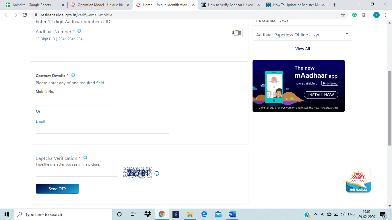 - Enter your 12-digit aadhaar card number and then enter captcha code for verification