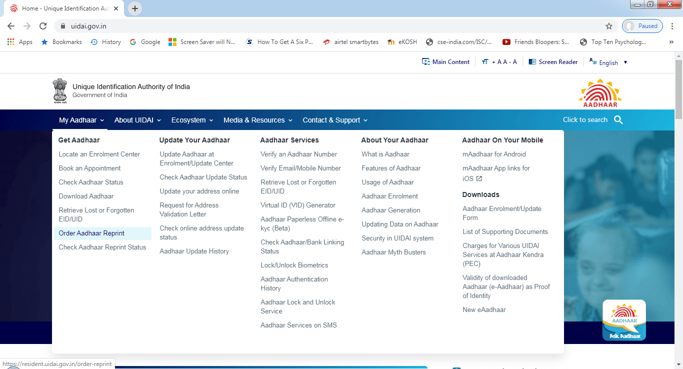 - Open the application and choose ‘Order Aadhaar Reprint’