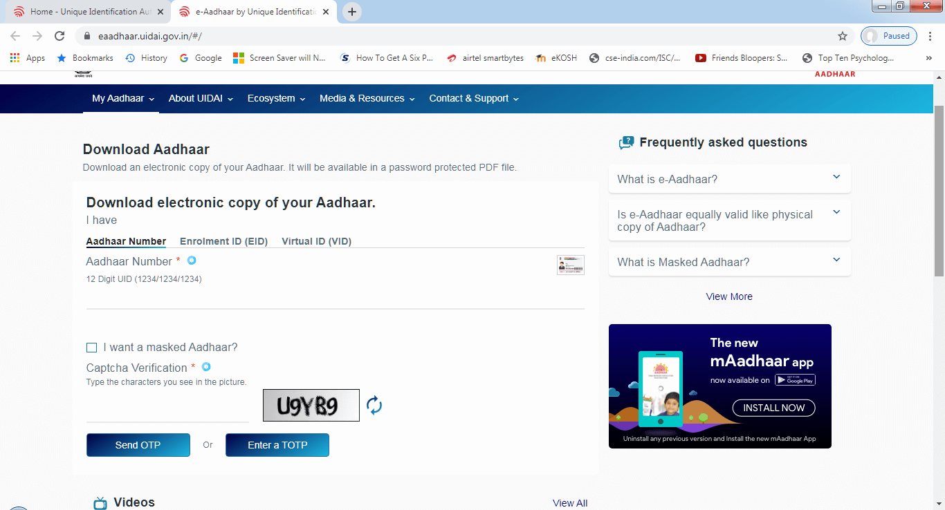While the physical Aadhaar card should be kept handy whenever required, UIDAI also allows you to download a soft copy of your Aadhaar card and store it on your phone or computer. You can download the Aadhaar card online either through the UIDAI website or through the mAadhaar application on your Smartphone. To download the Aadhaar card online, here are the steps –